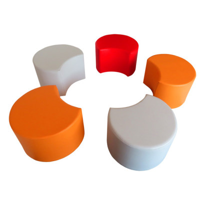 Meubles en mousse (meubles remplis de mousse) recouverts de PVC, conformes à toutes les réglementations européennes : EN-71, qui garantit un produit non toxique, et UNE 23-727, qui fait référence à un matériau ignifuge classé M2. Les matériaux sont antiallergiques, antibactériens et facilement lavables à l'eau et au savon, de cette façon nous nous adaptons aux besoins des crèches, des écoles et des centres afin qu'ils puissent utiliser quotidiennement les meubles en mousse, sans se soucier de la détérioration de la pièce. Les meubles en mousse de Sumo Didactic sont en mousse de polyuréthane de 25 kg, recouverts de cuir ou de PVC, selon la demande. Les meubles en mousse sont personnalisables, tant dans la matière que dans les couleurs. Consultez les palettes de couleurs en fonction du matériau choisi. Chaque module de mobilier s'adapte à la taille des enfants : Âge de 1 à 3 ans : hauteur d'assise maximale de 15 cm. Âge de 3 à 5 ans : hauteur d'assise maximale de 25 cm. De 5 à 8 ans : hauteur d'assise maximale de 30 cm. A partir de 8 ans : hauteur d'assise de 40 cm.